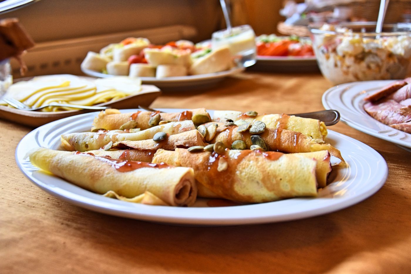 Oferujemy wyżywienie pełne lub częściowe. Według gości kuchnia jest jedną z naszych najmocniejszych stron. Goście zajadają się u nas bogatymi śniadaniami w formie bufetu, serwowanymi dwudaniowymi obiadami oraz ciepłymi kolacjami.